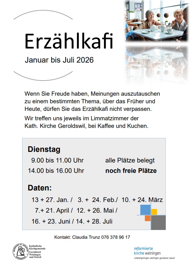 Das Erzählkafi findet am Dienstag jeweils morgens von 09.00 bis 11.00 Uhr und nachmittags von 14.00 bis 16.00 Uhr statt. Den Flyer mit den aktuellen Daten finden Sie hier…